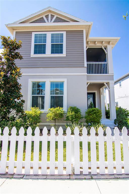 Magazine ready complete with picket fence, this is the best way to introduce this beautiful home. This must see gorgeous 3 bedroom 2.5 bath home is located in the sought after neighborhood of Winthrop Village. As you drive through this adorable neighborhood you can't help but feel that you have found the place where neighbors still wave and tea is still sipped on front porch's as the sun goes down. Picket fences and pristine landscaping frame this home beautifully from the street. It only gets better as you walk through the front door adorned with glistening lead glass and are greeted with the mahogany stained staircase and spacious formal dining and living room combo, perfect for entertaining. The kitchen is an entertainers dream featuring an LG French door - Instaview refrigerator, tons of counter space, 42' cabinets, gas stove and granite countertops. The kitchen opens up to the family room and breakfast nook. You will also find a convenient half bath located on the first floor. The Master-suite is a perfect haven from a hectic day. Enjoy watching the stars fade into the night while enjoying a cocktail on your private screened in balcony or soak your cares away in the large soaking bathtub. The master-bath also features two vanities, large walk-in shower and granite counters. The laundry room, two bedrooms and a full bath finish out the second floor of this stunning home. Your private first floor covered lanai is fully screened and provides a quiet place for reading or watching the big game while grilling on the paved patio. This home truly has everything your looking for, stylish large tile, crown moulding, fresh paint inside and out, located within walking distant to playground, pool, retail shops, restaurants, schools, day care, doctors offices and coffee shops. Schedule your showing of this lovely home today!